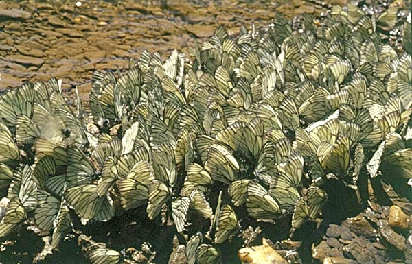 transparente Flügelstellen. Gelegentlich kann es bei diesem Falter zu Massenvermehrungen