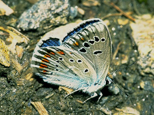 Dieser prächtige, recht große Bläuling ist an der schwachen, weißlichen