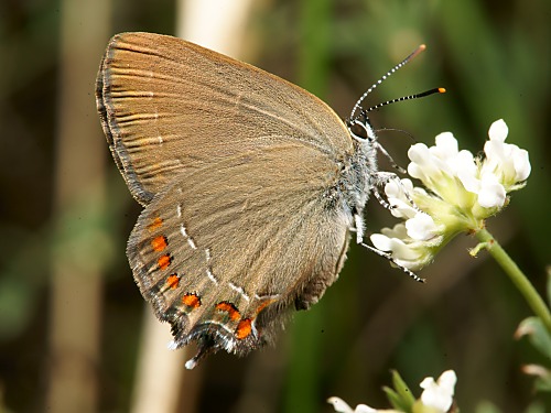 Dieser Zipfelfalter sieht dem Braunen Eichenzipfelfalter, Satyrium